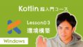 このレッスンでは、Kotlin超入門コース#03 環境構築について説明をします。