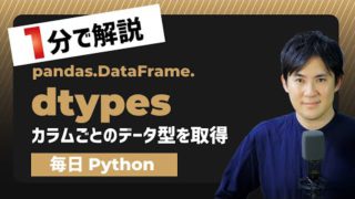 こんにちは。キノコードです。この動画では、Pythonのデータ型について説明します。説明する内容は、こちらです。後ほど詳しく説明しますが、Pythonでのデータ型は、宣言をしなくても自動的にデータ型を判断してくれます。ではなぜ、データ型につ...