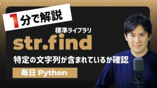 str = 'good cookie, good book'str.rfind('good')Pythonで文字列が最後に現れる位置を確認する方法です。Pythonの標準ライブラリのrfindメソッドを使用します。文字列を変数に格納します。...