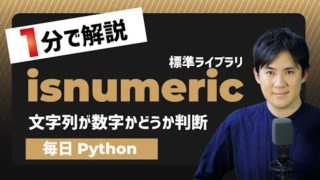 こつこつPython 【毎日Python】Pythonで文字列が数字かどうかを判断する方法|isnumeric str = '123456'Pythonで文字列が数字かどうかを判定する方法です。Python標準ライブラリのisnumericメソッドを使用します。まず数字の文字列を変数に格納します。str.isnumeric()変数.isnumeric... 2021.08.04 こつこつPython