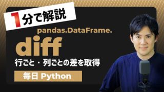 Pythonでデータフレームの行ごと・列ごとの差を取得する方法です。使用するのは、PythonのPandasライブラリのdiffメソッドです。このようなデータフレームを使用します。import pandas as pddf = pd.Dat...