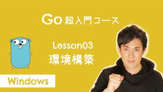 このレッスンでは、Go超入門コース#03 環境構築について説明をします。環境構築とは、プログラムを書いたり、実行できたりする環境を自分のコンピュータに整えることをいいます。環境構築のために、Go本体、VisualStudioCode、VisualStudioCodeのGoの拡張機能の3つをインストールします。